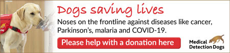 We'll be raising money for Medical Detection Dogs who are helping sniff out Covid-19 and other illnesses as seen here. You can play an important part in helping to fund this vital charitable work by clicking on the banner above.